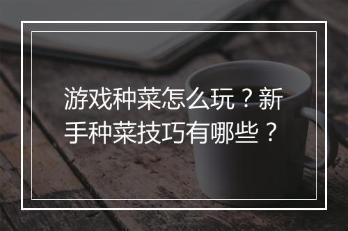 游戏种菜怎么玩?新手种菜技巧有哪些?随着科技的发展,手机游戏越来越丰富,其中种菜游戏因其简单易上手、休闲放松的特点,受到了许多玩家的喜爱。那么,游戏种菜究竟怎么玩?新手在种菜过程中有哪些技巧可以学习呢?本文将为您详细解答。一、游戏种菜的基本玩法1. 选择游戏...